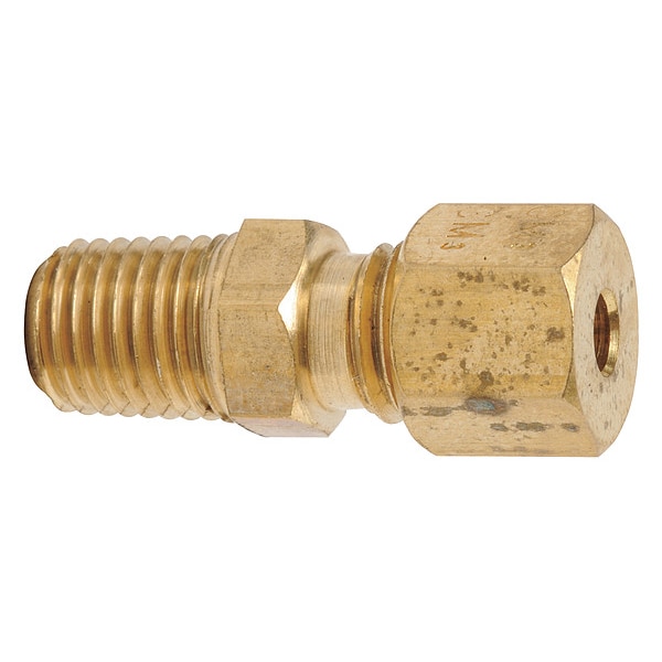 AM Connector Fitting, Application Air, Fitting Side A Connection Type Compression, Fitting Material Brass, Fitting Side A Tube Outer Diameter 1/8 in, Maximum Operating Temperature 250 Degrees F, Specific Fitting Shape Connector, Fitting Side B Pipe Size 1/16 in, Thread Size A 5/16-24, Thread Size B 5/16-24, Minimum Operating Temperature 65 Degrees F, Package Quantity 5