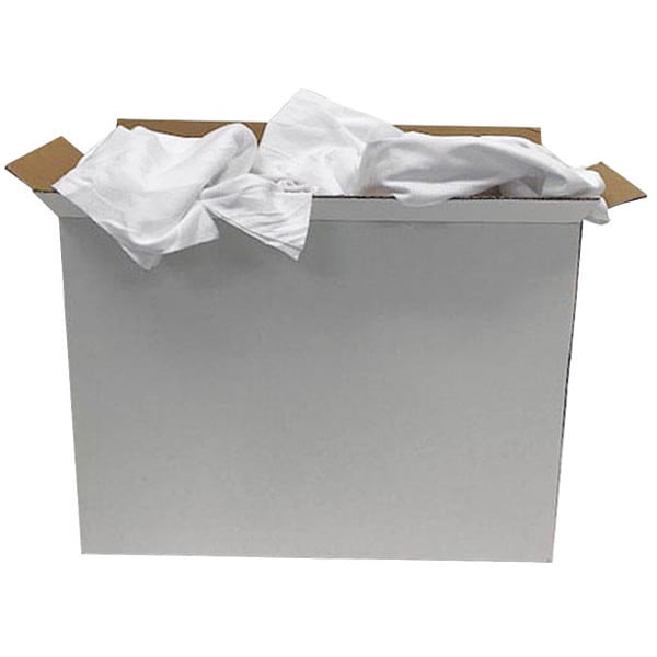 Cloth Rag, Cleaning Cloth Style T-Shirt, Material Washed Cotton, Cleaning Cloth Color White, Cleaning Cloth Condition New, Weight 25 lb, Estimated Piece Count 250, Package Type Box, Size Varies, Lint Level Low Lint, Primary Cleaning Application Painting and Staining