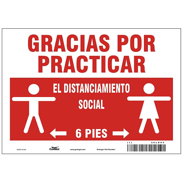 Covid 19 Sign 7X10, Spanish Practice Soc, Sign Subject Matter Coronavirus Prevention, Height 7 in, Width 10 in, Sign Material Polystyrene, Sign Mounting Style With Mounting Holes, Header Gracias Por Practicar, Legend El Distanciamiento Social 6 Pies, Printed Language Spanish
