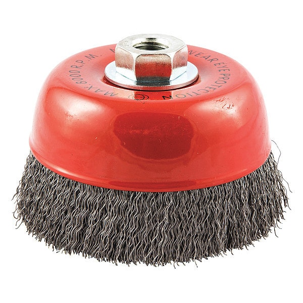 Cup Brush, Product Type Cup Brush, Quick Change System Not Applicable, Bristle Type Crimped Wire, Bristle Material Carbon Steel, Brush Dia. 5 in, Wire Dia. 0.014 in, Bristle Length 1 3/8 in, Grit Not Applicable, Overall Length Not Applicable, Compatible Tool Type Right-Angle Grinder, Color Not Applicable, Connector Type Threaded Hole, Connector Size 5/8 In.-11, Operating Speed - Maximum 8,000 RPM, Shank Length Not Applicable, Series Gemini