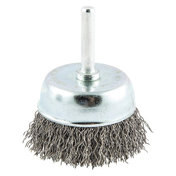 Cup Brush, Product Type Cup Brush, Quick Change System Not Applicable, Bristle Type Crimped Wire, Bristle Material Carbon Steel, Brush Dia. 2 1/4 in, Wire Dia. 0.014 in, Bristle Length 5/8 in, Grit Not Applicable, Compatible Tool Type Straight Grinder, Drill Press, Impact Driver, Pencil Grinder, Color Not Applicable, Primary Material Application Carbon Steel, Cast Iron, Wood, Connector Type Round Shank, Connector Size 1/4 in, Operating Speed - Maximum 4,500 RPM, Series Gemini