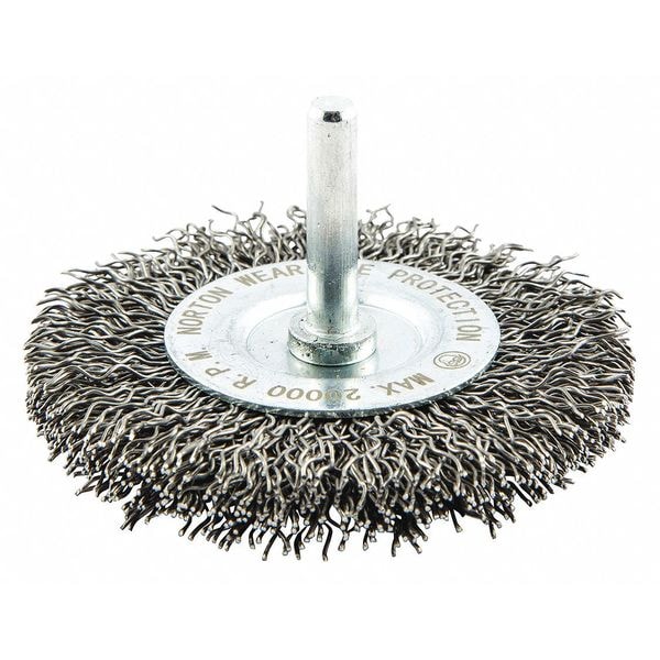 End Brush, Bristle Type Crimped Wire, Product Type Wire Wheel Brush, Bristle Material Carbon Steel, Brush Dia. 3 in, Grit Not Applicable, Bristle Diameter 0.02 in, Bristle Length 1 in, Compatible Tool Type Die Grinder, Drill Press, Pencil Grinder, Straight Grinder, Connector Type Round Shank, Connector Size 1/4 in, Operating Speed - Maximum 20,000 RPM, Color Not Applicable, Series Gemini