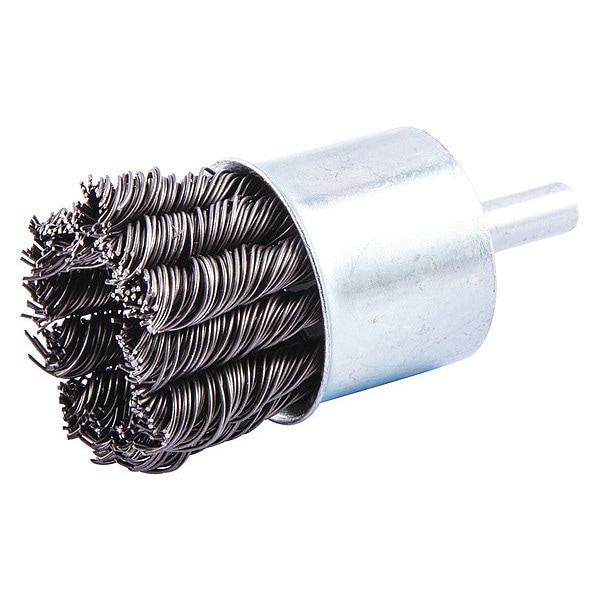 End Brush, Product Type End Brush, Quick Change System Not Applicable, Bristle Type Crimped Wire, Bristle Material Carbon Steel, Brush Dia. 1 in, Wire Dia. 0.02 in, Bristle Length 7/8 in, Grit Not Applicable, Overall Length 2 7/8 in, Compatible Tool Type Straight Grinder, Drill Press, Impact Driver, Pencil Grinder, Color Not Applicable, Primary Material Application Carbon Steel, Cast Iron, Wood, Connector Type Round Shank, Connector Size 1/4 in, Operating Speed - Maximum 22,000 RPM