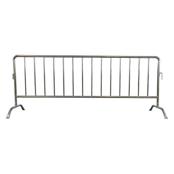 Crowd Control Barrier, Color Silver, Includes (2) Curved Removable Feet, Overall Height 40 1/2 in, Overall Length 8 1/2 ft, Overall Width 20 in, Material Steel, Finish Zinc Plated, Frame Diameter 1.3 in, Bar Diameter 0.63 in, Weight 24 lb, Legend No Legend, Product Type Railing, Portability Manual Carry, Resistance Properties Not Applicable, Connecting Option Interlocking, Standards Not Applicable, Legend Color Not Applicable, Pattern No Pattern, ADA Compliance No