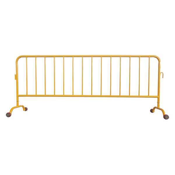 Crowd Control Barrier, Color Yellow, Includes (2) Removable Feet with Wheels, Overall Height 40 1/2 in, Overall Length 8 1/2 ft, Overall Width 20 in, Material Steel, Finish Powder Coated, Frame Diameter 1.6 in, Bar Diameter 0.75 in, Weight 35 lb, Legend No Legend, Product Type Railing, Portability Casters, Resistance Properties Not Applicable, Connecting Option Interlocking, Standards Not Applicable, Legend Color Not Applicable, Pattern No Pattern, ADA Compliance No