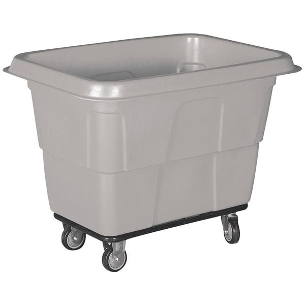 High-Maneuverability Cube Truck, Cubic Foot Capacity 11.9 cu ft, Load Capacity 600 lb, Bushel Capacity 9.6 bu, Overall Length 43 in, Overall Height 35 1/2 in, Overall Width 27 in, Overall LxWxH 43 in x 27 in x 35 1/2 in, Color Gray, Container Material MDPE, Standards FDA Compliant Resin, Cubic Yard Capacity 0.44 cu yd, Mobility Option Manual, Container Legend None