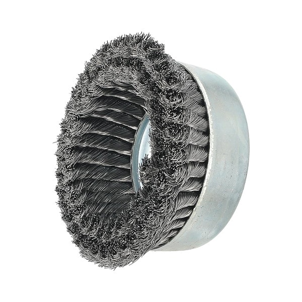 Cup Brush, Product Type Double-Row Cup Brush, Quick Change System Not Applicable, Bristle Type Standard Twist Knot Wire, Bristle Material Carbon Steel, Brush Dia. 6 in, Wire Dia. 0.02 in, Bristle Length 1 3/8 in, Grit Not Applicable, Overall Length Not Applicable, Compatible Tool Type Right-Angle Grinder, Color Silver, Primary Material Application Carbon Steel, Steel, Connector Type Threaded Hole, Connector Size 5/8 In.-11, Operating Speed - Maximum 6,600 RPM