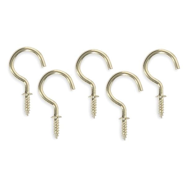 Single Point Hook, Fastening Method Screw In, Points per Hook 1, Number of Hooks 1, Basic Hook Material Steel, Hook Finish Brass, Hook Height 1 1/2 in, Hook Base Width 3/4 in, Projection 1 in, Brass, Thread Size Not Applicable, Weight 2.5, Thread Length 1/2 in, Includes Not Applicable, Mounting Screw-In, Overall Length 1 3/8 in, Package Quantity 20