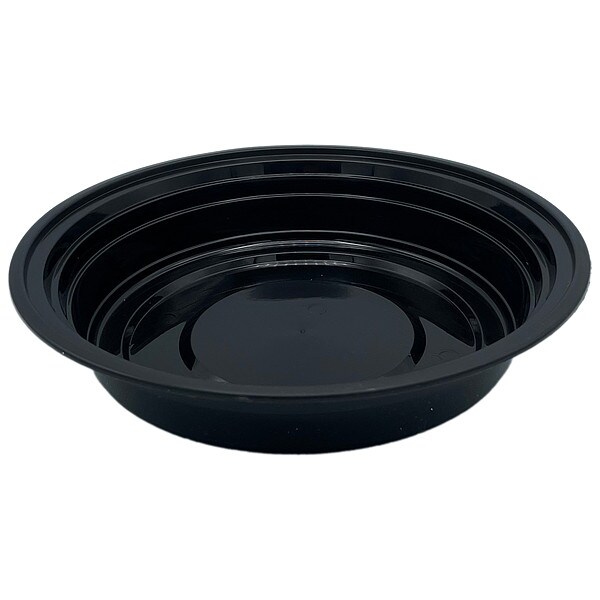 Disposable Carry-Out Food Container, Bio-Based No, BPI Certified No, Capacity 48 oz, Closure Type Detached Lid, Coating or Lining Uncoated/Unlined, Color Black, Clear, Compostable Not Compostable, Container Style Base/Lid Combo, Depth 9 3/16 in, Diameter 9 in, FSC Certified No, Includes Lid Yes, Material Plastic, Microwave Safe Yes, Number of Compartments 1, Product Type Carry-Out Food Container, Recyclable No, SFI Certified No, Shape Round, Specific Material Polypropylene