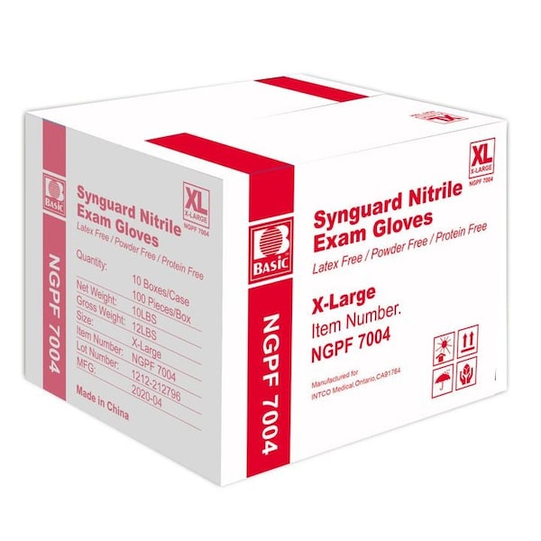 SYNGUARD nitrile gloves are disposable gloves made of nitrile, a synthetic rubber material that is resistant to punctures, tears, and chemicals. Nitrile gloves are commonly used in a variety of industries, including healthcare, food service, and manufacturing, because they provide a high level of protection against a wide range of hazards. SYNGUARD nitrile gloves are designed to be comfortable and flexible, while also providing a snug, secure fit. They are available in a range of sizes to fit different hand shapes and sizes, and are typically powder-free to prevent irritation. SYNGUARD nitrile gloves are suitable for use in a variety of applications, including medical procedures, food handling, and chemical handling. INTCO is publically traded one of the largest glove manufactures in the world. This item is for a case of 1000 10 boxes of 100 gloves vinyl 510K exam gloves. The INTCO BASIC CLEAR VINYL is one of their most popular gloves.SPECIFICATIONS:100/BX, 1000/CSColor BlueNitrile Exam RatedPowder FreeLatex FreeProtein Free510K Clearance: https://www.accessdata.fda.gov/scripts/cdrh/cfdocs/cfpmn/pmn.cfm?ID=K132201
