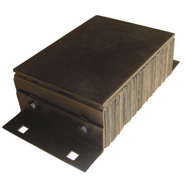 Dock Bumper, Laminated Rubber Backing, Steel Face, Overall Height 10 in, Overall Depth 5 1/4 in, Overall Width 19 3/4 in, Rectangular, Bumper Height 10 in, Bumper Width 14 1/2 in, Bumper Depth 5 1/4 in, Mounting Hole Dia. 7/8 in, Mounting Holes O.C. W 18 in, Mounting Holes O.C. H 6 in, Number of Mounting Holes 4, Mounting Style Bolt On