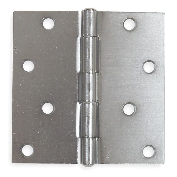 Butt Hinge, Steel, Zinc Finish, Not Applicable Load Capacity, With Holes, 4 Holes per Leaf, No Ligature Resistant, 270 Degrees Range of Motion, Orientation Non Handed, 4 in Door Leaf Height, 4 in Frame Leaf Height, 4 in Door Leaf Width, 1 3/4 in Frame Leaf Width, 0.088 in Door Leaf Thickness, 0.088 in Frame Leaf Thickness, Plain Bearing Type, Square Corners, Included Hardware, Features Countersunk Holes