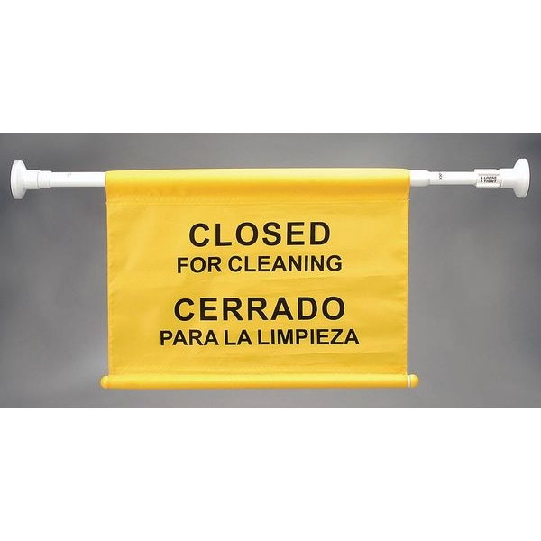 Door Barricade Sign, Horizontal Rectangle, Number of Printed Sides 1, English, Spanish, Sign Legend Closed for Cleaning/Cerrado Por Limpieza, Sign Legend Background Color Yellow, Sign Legend Style Text, Sign Legend Character Height 1 5/8 in