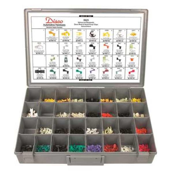(10) Hood Prop Clips FORD # 386299-S, (12) Door Lock Rod Clips FORD # E6AZ-5421952-A, (6) Door & Tailgate Rod Clips GM # 16629990, (6) Door Lock Rod Clips FORD # F85Z-152195-BB, (8) Hood Prop Clips FORD # E83Z-1, (8) Hood Rod Prop Clips FORD # E1FZ16828-C