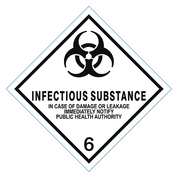 DOT Container Label, Language English, Container Label/Placard Type Hazardous Class, Hazard Class Class 6 (Toxic, Poison Inhalation, & Infectious Substance), DOT/UN Product Form Label, Message Infectious Substance in Case of Damage, Label Width 4 in, Label Height 4 in, Material Vinyl, Package Quantity 25