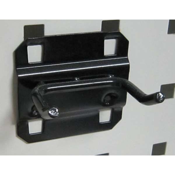Double Rod Pegboard Hook, Overall Length 1 1/2 in, Overall Width 2 1/4 in, 1 1/2 in For Pegboard Hole Spacing, For Pegboard Hole Size 3/8 in, Surface, Screw-In Locking System, Square For Pegboard Hole Shape, Steel, Black, 30-Degree Double Rod Hook Accessory Type, Package Quantity 5