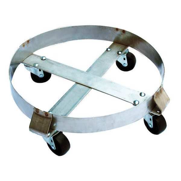 Drum Dolly, Load Capacity 800 lb, For Cntnr Cap 30 gal, Deck Height 6 1/2 in, Deck Shape Round, Deck Type Open, For Container Material Plastic, Steel, For Maximum Container Diameter 14 in, For Maximum Container Height 14 in, Adjustment Type Not Adjustable, Frame Material Steel, Frame Gauge 13 ga, Rim Catch Type Fixed, Securing Mechanism No Securing Mechanism, Frame Finish Unfinished, Axle-Mounted Wheel Dia. 3 in, Axle-Mounted Wheel Type Solid, Caster Wheel Dia. 3 in