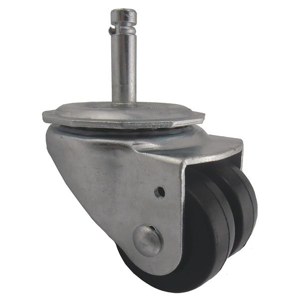 Stem Caster, Swivel Caster, 200 lb Load Rating, 0 to 299 lb, 2 in Wheel Dia., 7/8 in Wheel Width, Rubber Wheel/Tread Material, 2 3/4 in Mounting Height, Plain, 7/16 in x 1-1/2 in Caster Stem Size, Friction Ring, Steel Caster Frame Material, Zinc Plated Frame Finish, No Non-Marking, 2 Number of Wheels