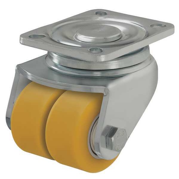 Swivel, Plate Caster, Load Rating 1235 lb, Swivel Lock Type No Lock Included, Wheel Dia. 3 1/8 in, Wheel Width 1 9/16 in, Wheel/Tread Material Polyurethane, Wheel Core Material Steel, Non-Marking Yes, Number of Wheels 2, Caster Brake Type No Brake, Tread Shape Standard