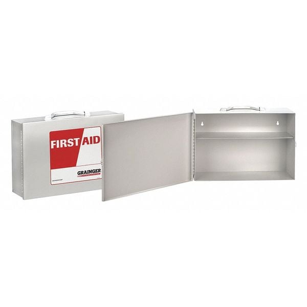 Empty First Aid Kit, Overall Height 10 1/4 in, Overall Width 14 3/4 in, Overall Depth 4 5/8 in, Housing Color White, Housing Material Metal, Mountable Wall Mount, Number of Shelves 2, Includes Mounting Hardware Hardware Not Included, Locking Not Lockable, Number of Keys Included Not Applicable, Number of Wheels Not Applicable, Product Type Empty First Aid Kit, Water Resistance Not Water Resistant