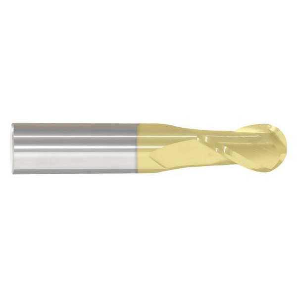 Ball End Mill, 0.203125 in Milling Dia., Carbide, TiN, Non-Coolant Through