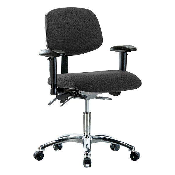 ESD Chair, Weight Capacity 300 lb, Material Fabric, Seat Height Range 19 in to 24 in, Color Black, Seat Width 18 1/2 in, Seat Depth 17 in, Seat Tilt Backward Not Applicable, Seat Tilt Forward Not Applicable, Back Height 11 1/2 in, Back Width 16 1/2 in, Back Tilt Backward 13.5 Degrees , Back Tilt Forward 10.5 Degrees , Number of Casters 5, Number of Glides 0, Foot Support No, Standards ANSI/BIFMA, CAL 117, Not Applicable