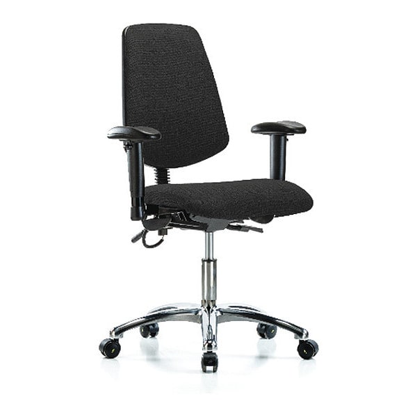 ESD Chair, Weight Capacity 300 lb, Material Fabric, Seat Height Range 19 in to 24 in, Color Black, Seat Width 18 1/2 in, Seat Depth 17 in, Seat Tilt Backward Not Applicable, Seat Tilt Forward Not Applicable, Back Height 18 in, Back Width 16 1/2 in, Back Tilt Backward 13.5 Degrees , Back Tilt Forward 10.5 Degrees , Number of Casters 5, Number of Glides 0, Foot Support No, Standards ANSI/BIFMA, CAL 117, Not Applicable