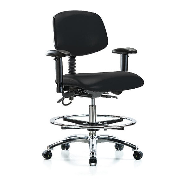 ESD Task Chair, Weight Capacity 300 lb, Material Vinyl (Antibacterial), Seat Height Range 21-1/2 in to 29 in, Color Black, Seat Width 18 1/2 in, Seat Depth 17 in, Seat Tilt Backward Not Applicable, Seat Tilt Forward Not Applicable, Back Height 11 1/2 in, Back Width 16 1/2 in, Back Tilt Backward 13.5 Degrees , Back Tilt Forward 10.5 Degrees , Number of Casters 5, Number of Glides 0, Foot Support Yes, Standards ANSI/BIFMA, CAL 117, Not Applicable