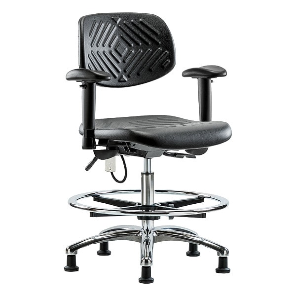 ESD Task Chair, Weight Capacity 300 lb, Material Polyurethane, Seat Height Range 20-1/2 in to 28 in, Color Black, Seat Width 16 in, Seat Depth 17 in, Seat Tilt Backward Not Applicable, Seat Tilt Forward Not Applicable, Back Height 10 1/4 in, Back Width 15 1/2 in, Back Tilt Backward 13.5 Degrees , Back Tilt Forward 10.5 Degrees , Number of Casters 0, Number of Glides 5, Foot Support Yes, Standards ANSI/BIFMA, CAL 117, ISO 5