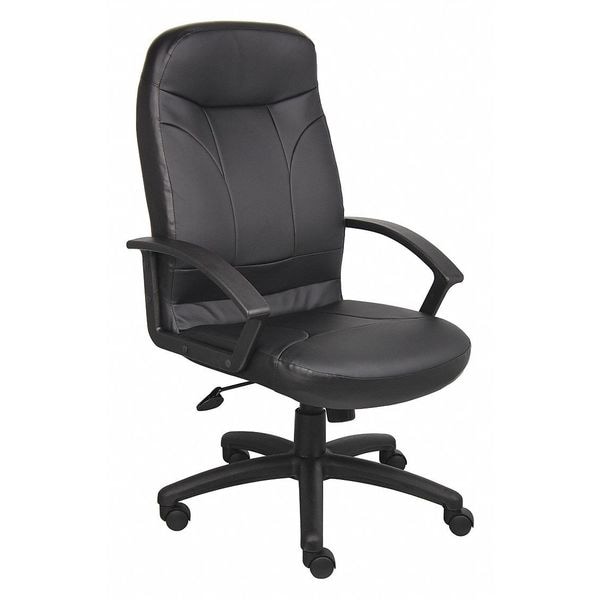 Office Chair, Adjustable Arms No, Overall Width 27 1/2 in, Overall Depth 29 1/2 in, Maximum Seat Height 22 in, Maximum Overall Height 46 1/2 in, Seat Color Black, Frame Color Black, Seat Thickness 3 in, Back Color Black, Seat Depth 19 in, Seat Width 20 in, Seat Material Leather, Back Material Leather, Frame Material Nylon, Number of Arms 2, Weight Capacity 275 lb, Tilt Configuration Not Applicable, Minimum Seat Height 18 1/2 in, Tilting Back No, Arm Adjustment Not Applicable, Back Height 29 in