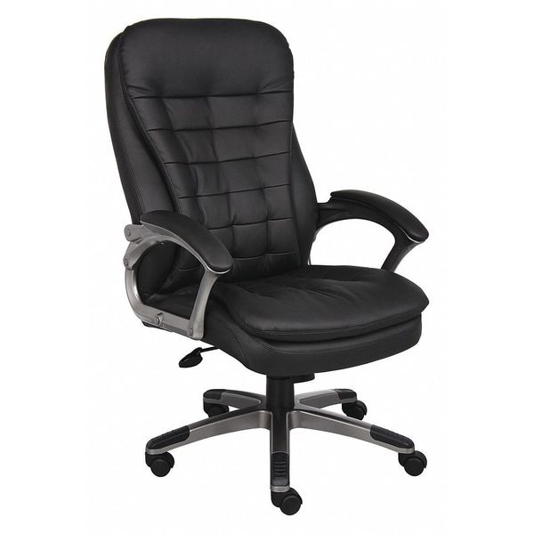 Office Chair, Adjustable Arms No, Overall Width 28 in, Overall Depth 31 1/2 in, Maximum Seat Height 21 3/4 in, Maximum Overall Height 46 1/4 in, Seat Color Black, Frame Color Platinum, Seat Thickness 4 1/2 in, Back Color Black, Seat Depth 19 1/2 in, Seat Width 21 in, Seat Material Vinyl, Back Material Vinyl, Frame Material Nylon, Number of Arms 2, Weight Capacity 275 lb, Tilt Configuration Not Applicable, Style Classification Executive, Minimum Seat Height 18 3/4 in, Tilting Back No