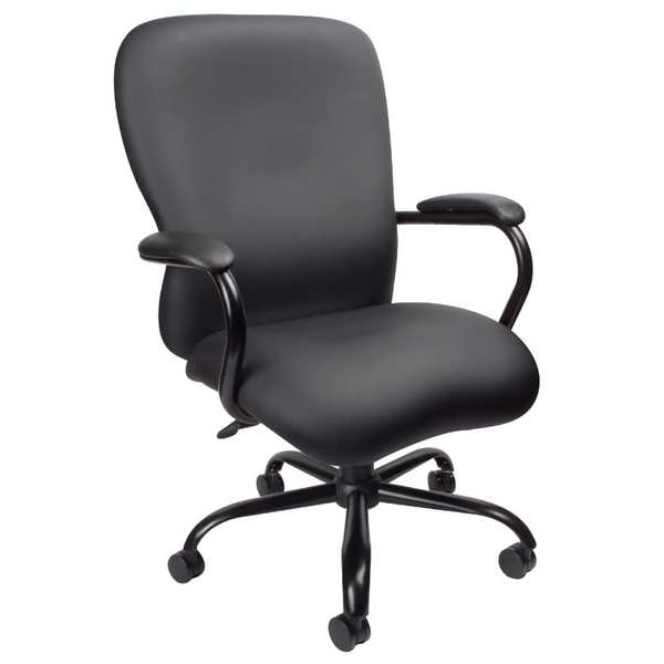 Office Chair, Adjustable Arms No, Overall Width 30 1/2 in, Overall Depth 27 in, Maximum Seat Height 22 in, Maximum Overall Height 45 1/2 in, Seat Color Black, Frame Color Black, Seat Thickness 3 1/2 in, Back Color Black, Seat Depth 21 in, Seat Width 24 in, Seat Material Vinyl, Back Material Vinyl, Frame Material Steel, Number of Arms 2, Weight Capacity 400 lb, Minimum Seat Height 19 in, Standards ANSI/BIFMA, Arm Adjustment Not Applicable, Back Height 28 1/2 in, Back Width 26 in