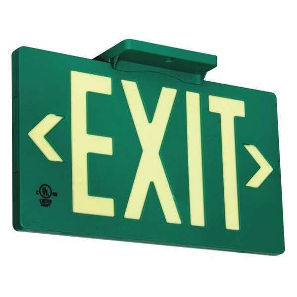 Exit Sign, Vertical Rectangle, Number of Printed Sides 1, English, Sign Format Traditional OSHA, Sign Legend Exit, Sign Legend Background Color Photoluminescent, Sign Legend Style Text, Sign Legend Character Height 7 in