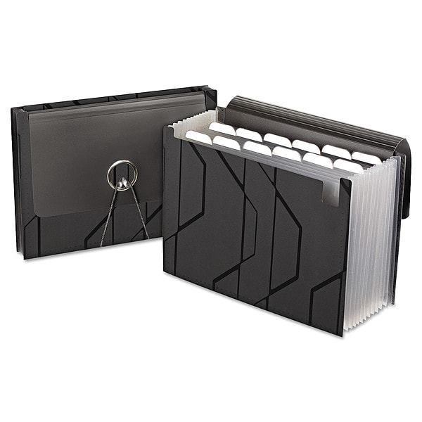 Expandable File Folder, Number of Pockets 13, Material Polypropylene, Sheet Size Letter, Color Black, Height 9 1/2 in, Expanded Width 4 in
