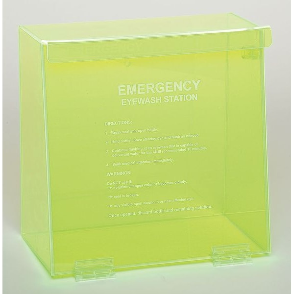 Single Use Eyewash Station, Bottle Size 32 oz, Features Hinged Access Door, For Use With Eyewash, Housing Capacity 2, Housing Depth 6 in, Housing Height 10 1/4 in, Housing Width 10 1/4 in, Housing Material Acrylic, Housing Style Closed, Number of Bottles Included 0, Color Green, Housing Included Yes, Standards ANSI Z358.1-2004