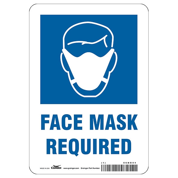 Safety Sign, Sign Subject Matter Coronavirus Prevention, Height 10 in, Width 7 in, Sign Material Aluminum, Sign Mounting Style With Mounting Holes, Header No Header, Legend Face Mask Required, Printed Language English, Sign Shape Rectangle