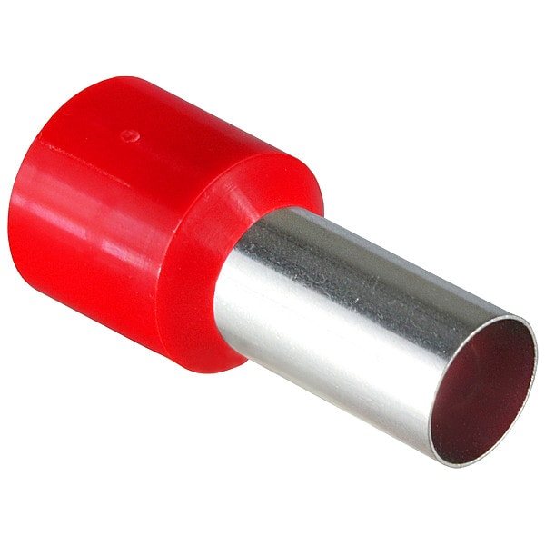 Wire Ferrule, Contact Finish Tin, Contact Material Copper, Ferrule Diameter 0.34 in, Ferrule Material Copper, Insertion Length 5/8 in, Insulation Color Red, Insulation Material Nylon, Maximum Operating Temperature 221 Degrees F, Maximum Voltage 600 V, Minimum Wire Size 2 AWG, Maximum Wire Size 2 AWG, Termination Style Crimp, RoHS Compliant Yes, Standards cULus Listed, Barrel Diameter 0.5 in, Barrel Finish Tin Plated, Barrel Length 0.55 in, Barrel Material Nylon, Maximum Conductors 1