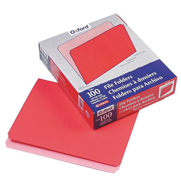 File Folders 8-1/2" x 11", Straight Tab, Red, Pk100