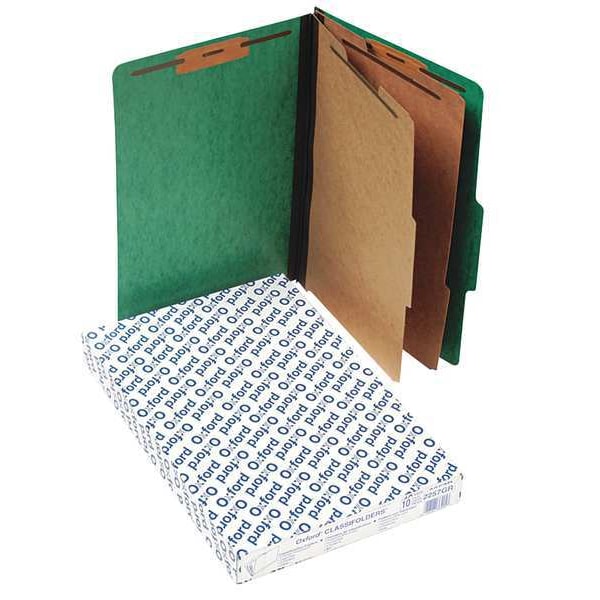 File Folders, Size Legal, 2/5 Tab Cut, Tab Position Right of Center, Height 8 1/2 in, Width 14 in, 2 in Expanded Width, Color Green, Package Quantity 10