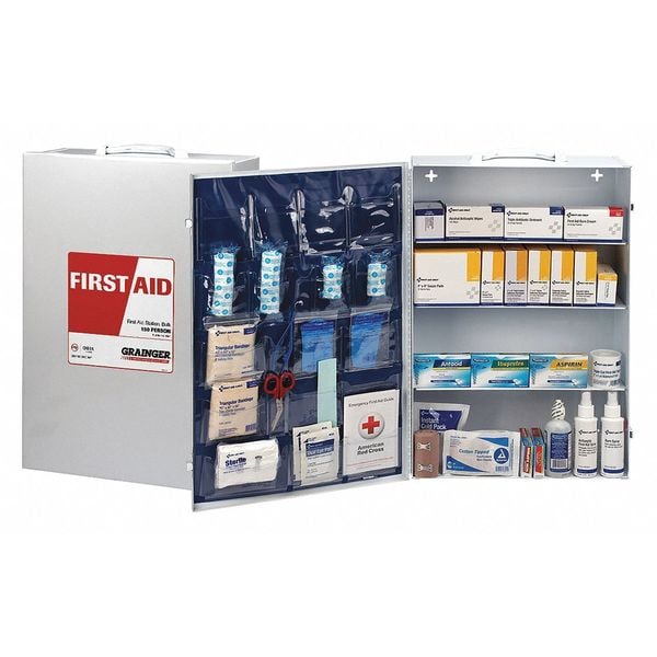 First Aid Kit and Housing, Metal Cabinet, 563 Components, 150 People Served