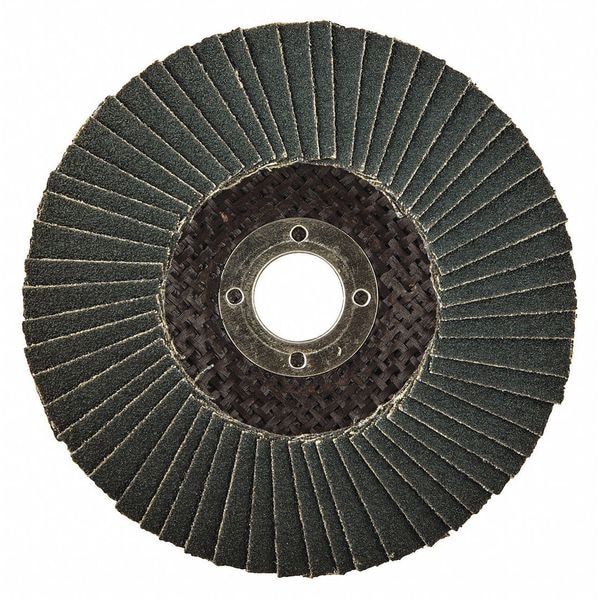 Flap Disc, Abrasive Type Coated, Abrasive Material Zirconia Alumina, Grade Medium, Backing Plate Material Fiberglass, Connector Size 5/8 in, Connector Type Unthreaded Hole, Density Rating Standard, Flap Disc Type Type 29, Overall Diameter 4 in, Series XC1176, Backing Material Fiberglass, Backing Weight X, Grit 60, Maximum Operating Speed 15,300 RPM