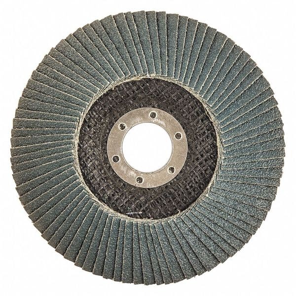 Flap Disc, Abrasive Type Coated, Abrasive Material Zirconia Alumina, Grade Medium, Backing Plate Material Fiberglass, Connector Size 7/8 in, Connector Type Unthreaded Hole, Density Rating Standard, Flap Disc Type Type 29, Overall Diameter 5 in, Series XB1186, Backing Material Fiberglass, Backing Weight X, Grit 60, Maximum Operating Speed 12,000 RPM