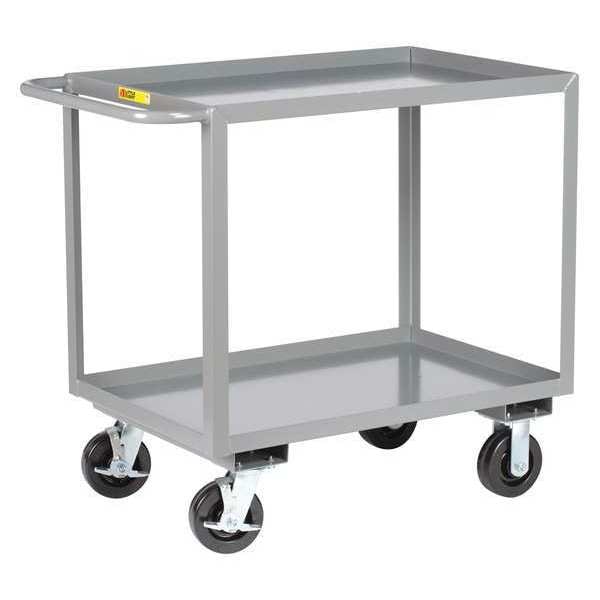 Flat Handle Utility Cart, Load Capacity 3600 lb, Steel Material, 12 Gauge, Powder Coated Finish, Gray Color, Overall Length 53 1/2 in, Overall Width 30 in, Number of Shelves 2, Capacity per Shelf 1800 lb, Distance Between Shelves 24 in, Shelf Length 48 in, Shelf Width 30 in, Top Shelf Height 36 in, Assembled/Unassembled Assembled