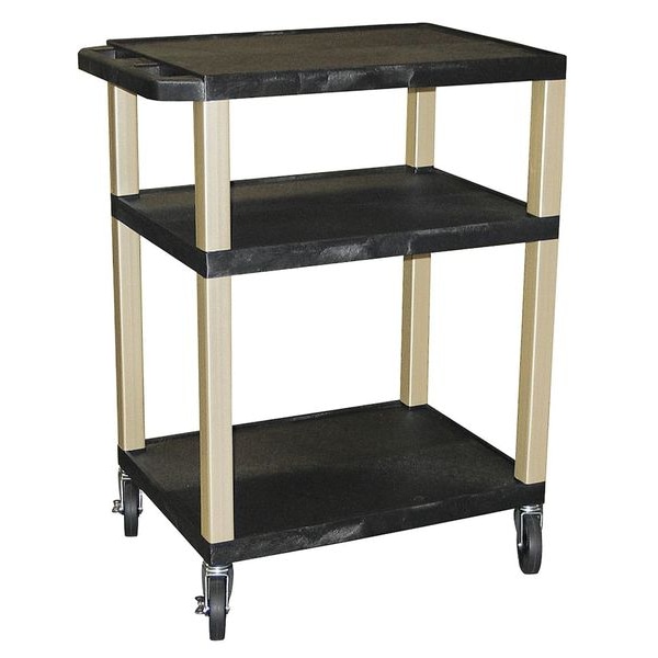 Flat Handle Utility Cart, Thermoplastic Resin, 300 lb Load Capacity, 3 Shelves, 24 in L, 18 in W