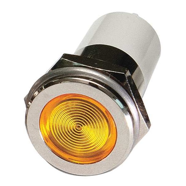 Flush Panel Light, LED, Brass Plated Chrome, LED, Plastic (ABS), Yellow, Voltage 110V AC, Size 16mm Mounting dia, Electrical Connection 0.11 Male Quick Disconnect, Shape Round, Current Drawn 4 mA, Average Life 100,000 hr, IP Rating IP40, Panel Thickness Up to 0.160 in, Standards cRUus, RoHS