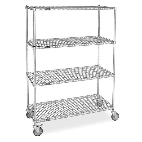 Wire Shelving Unit, Steel, Zinc-Plated, Silver, Overall Depth 24 in, Overall Height 80 in, Overall Width 48 in, Caster Wheel/Configuration (4) Swivel, Caster Wheel/Tread Material Polyurethane, Caster Wheel Diameter 5 in, Load Capacity per Shelf 250 lb, Whole Unit Load Capacity 1,000 lb, Number of Shelves 4, Shelf Adjustment Type Split Sleeve, Shelf Adjustment Increments 1 in, Shelving Configuration Standalone, Adjustability Adjustable, Includes (16) Plastic Split Sleeves, (4) Posts with Levelers