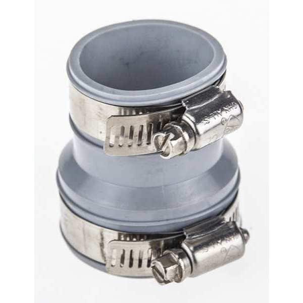 Flexible Reducing Coupling, For Nominal Pipe Size 1 1/4 in, 1 1/2 in, PVC, 1 1/2 in, 1 7/16 in, 1 11/16 in, Female, 1 1/2 in, 1 15/16 in, 2 1/16 in, Female, For Pipe Schedule Schedule 40, 2 19/64 in Overall Length