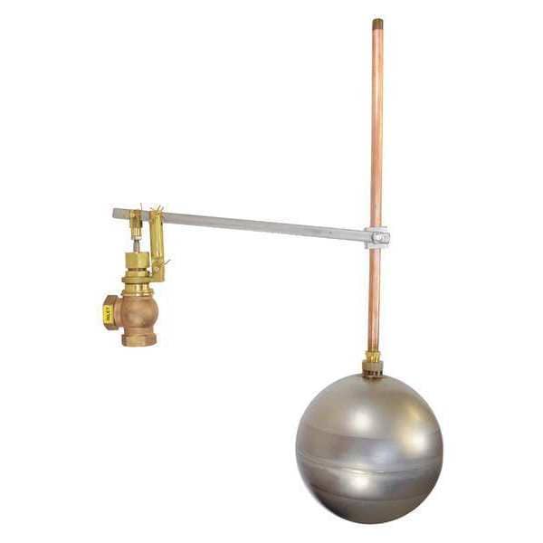 Float Valve Assembly, Mounting Horizontal Piping, Size 3/4 in, Connection Type FNPT, Rod Thread 1/4 In. NPT, Rod Length 16 in, Rod Material Brass, Body Material Bronze, Valve Flow - Pressure (1) 60 psi, Valve Flow - Flow (1) 50 gpm, Valve Flow - Pressure (2) 20 psi, Valve Flow - Flow (2) 13 gpm, Max. Pressure 150 psi, Max. Temp. 450 Degrees F, Features Angle Body Design, Heavy-Duty, Sealed, Threaded Outlet, Valve Material Bronze, Float Material Stainless Steel, Float Size 7 in