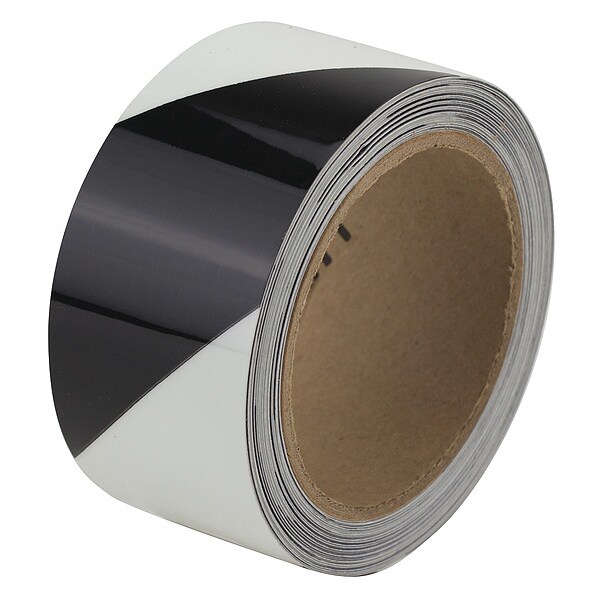 Floor Marking Tape, Continuous Roll, Striped, Black/White, 2 in, 30 ft, 11 mil, Vinyl, Approved Vendor, Legend No Legend, Glow In The Dark Yes, Retroreflective Grade Non-Reflective