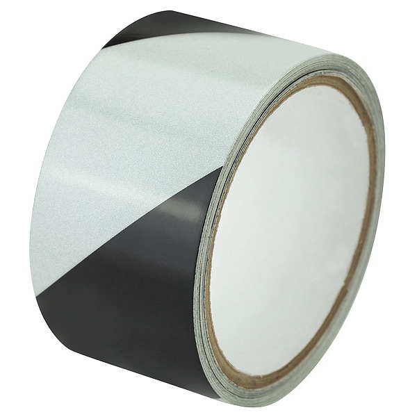 Floor Marking Tape, Continuous Roll, Striped, Black/White, 2 in, 15 ft, 5.5 mil, Vinyl, Approved Vendor, Legend No Legend, Glow In The Dark No, Retroreflective Grade Engineer